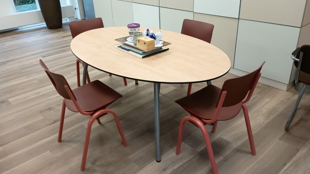 Na zorgvuldige overweging en goed advies, is de keuze voor Goinga gemaakt. Er werden 8 ergonomische bureaustoelen met beweeglijke eigenschappen aangeschaft. Er werden goed onderbouwde adviezen gegeven over de zit/sta bureau’s. Ook is de overlegruimte een hoge statafels met hoge krukken geplaatst, wat de efficiency van een overleg sterk verhoogd!