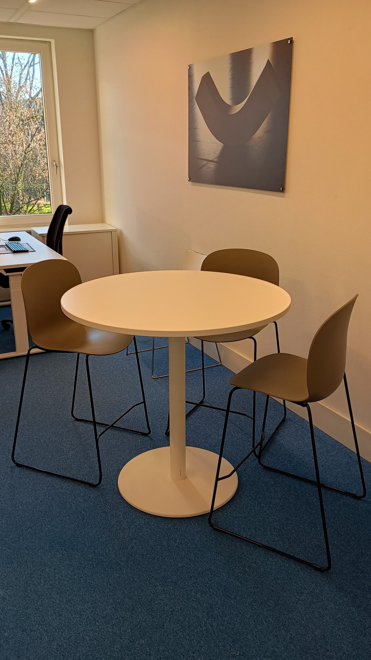Na zorgvuldige overweging en goed advies, is de keuze voor Goinga gemaakt. Er werden 8 ergonomische bureaustoelen met beweeglijke eigenschappen aangeschaft. Er werden goed onderbouwde adviezen gegeven over de zit/sta bureau’s. Ook is de overlegruimte een hoge statafels met hoge krukken geplaatst, wat de efficiency van een overleg sterk verhoogd!